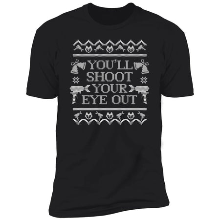 You'll Shoot Your Eye Out Spray Foam Christmas T-Shirt (White Design)